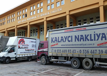 Faaliyet alanı; evden eve nakliyat, şehir içi nakliyat, şehirler arası nakliyat, şirket taşımacılığı, ev eşyası paketleme, kurum taşımacılığı, şehir içi yük taşımacılığı, şehirler arası yük taşımacılığı olan Kalaycı Bolu Evden Eve Nakliyat, her türlü nakliye istek ve ihtiyaçlarınızı karşılamaya hazırdır.